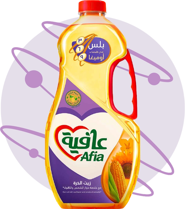 Afia Plus Oil is a blend of purity and vibrance, crafted from corn with hints of sunflower and canola. Earning its role in the kitchen, it is enriched with Omega 3, 6, and 9 adding a light yet nutrient-rich touch to your cooking.