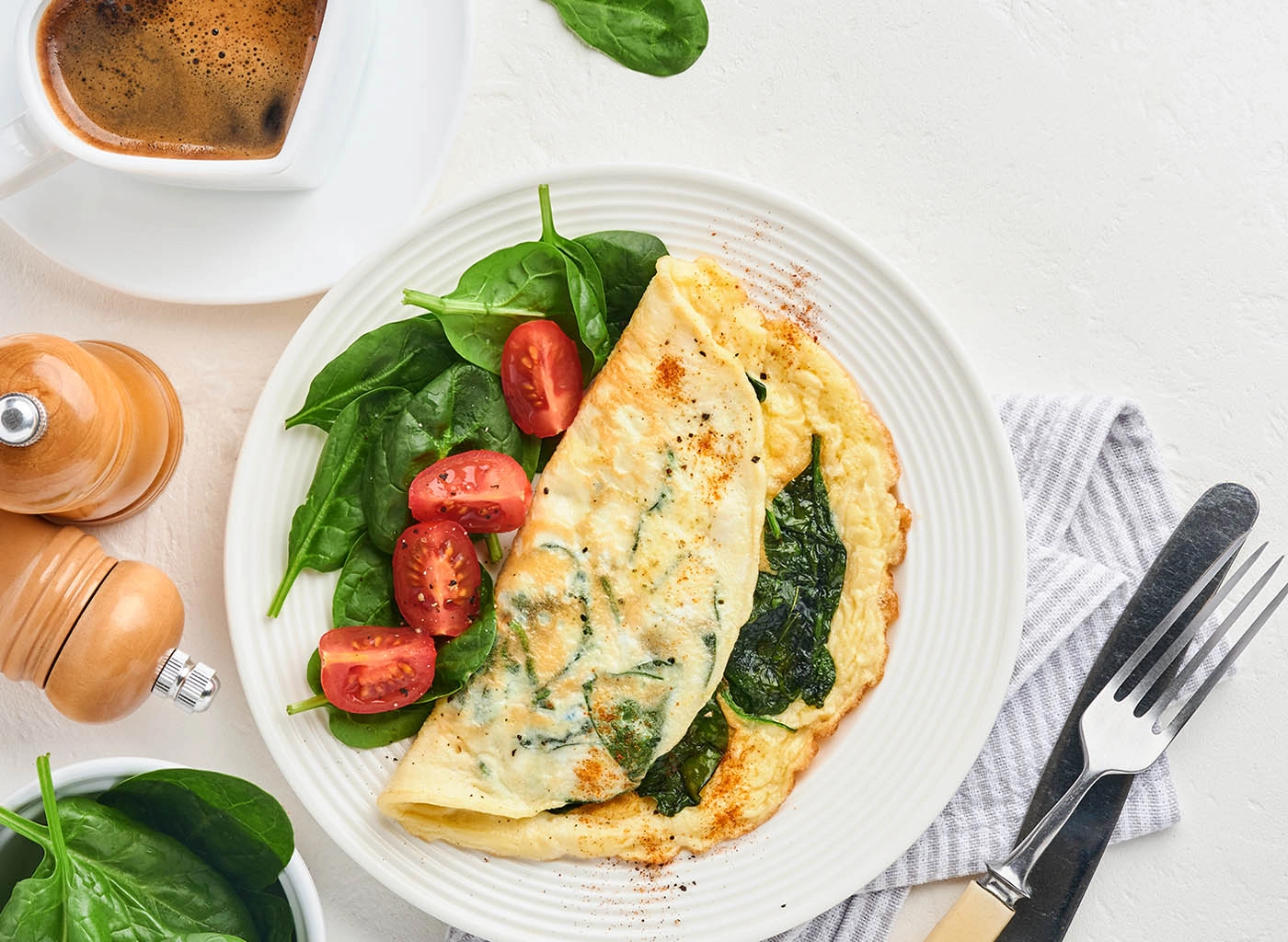 In a bowl put eggs with chopped spinach, spices, and two tablespoons of milk, and mix them together very well.