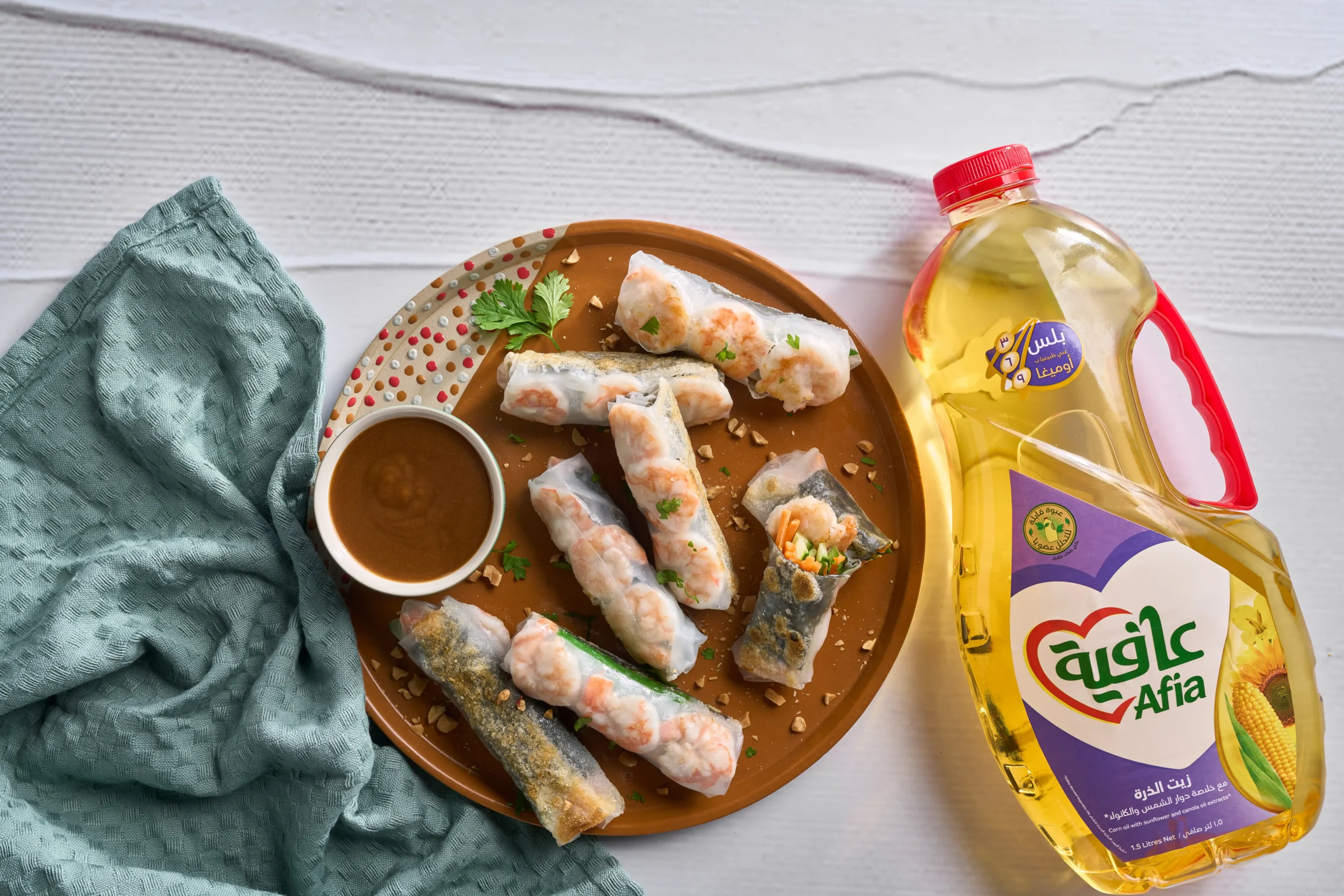 To assemble rolls, dip rice paper in shallow water for 10-15 seconds.